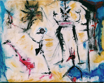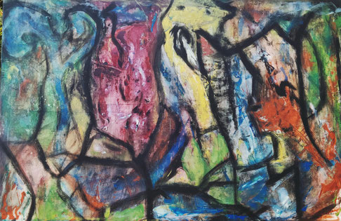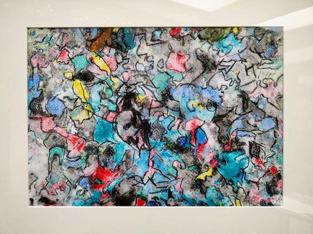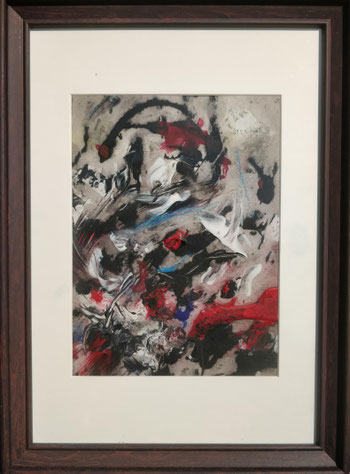 Acryl en krijt op linnenpapier. Met lijst.