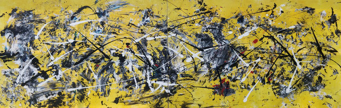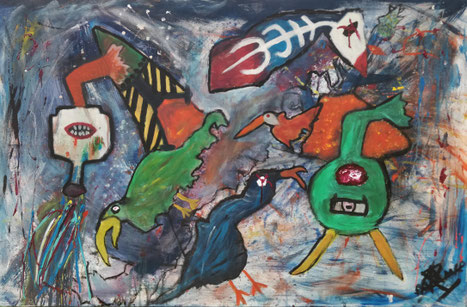 Acryl en olieverf op linnen doek.
